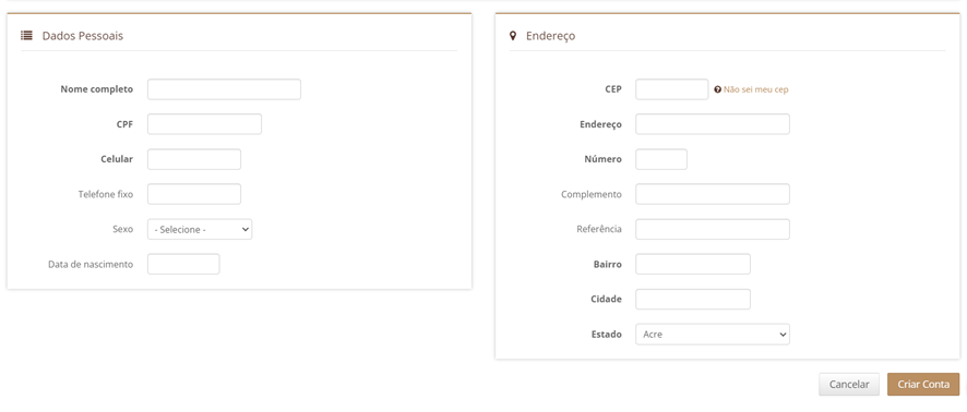 Uma vez que o e-mail seja definido, o usuário precisa preencher seus dados pessoais, como CPF, telefone e data de nascimento, bem como o seu endereço completo.