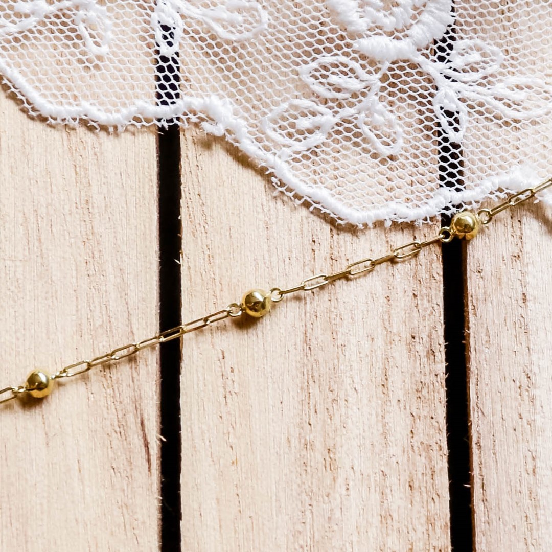 É confortável de usar em qualquer ocasião. Seu design minimalista apresenta delicadas bolinhas de ouro, criando um visual elegante e refinado. A delicadeza desse design clássico é o que torna essa pulseira uma peça versátil, capaz de complementar perfeitamente qualquer estilo ou ocasião.